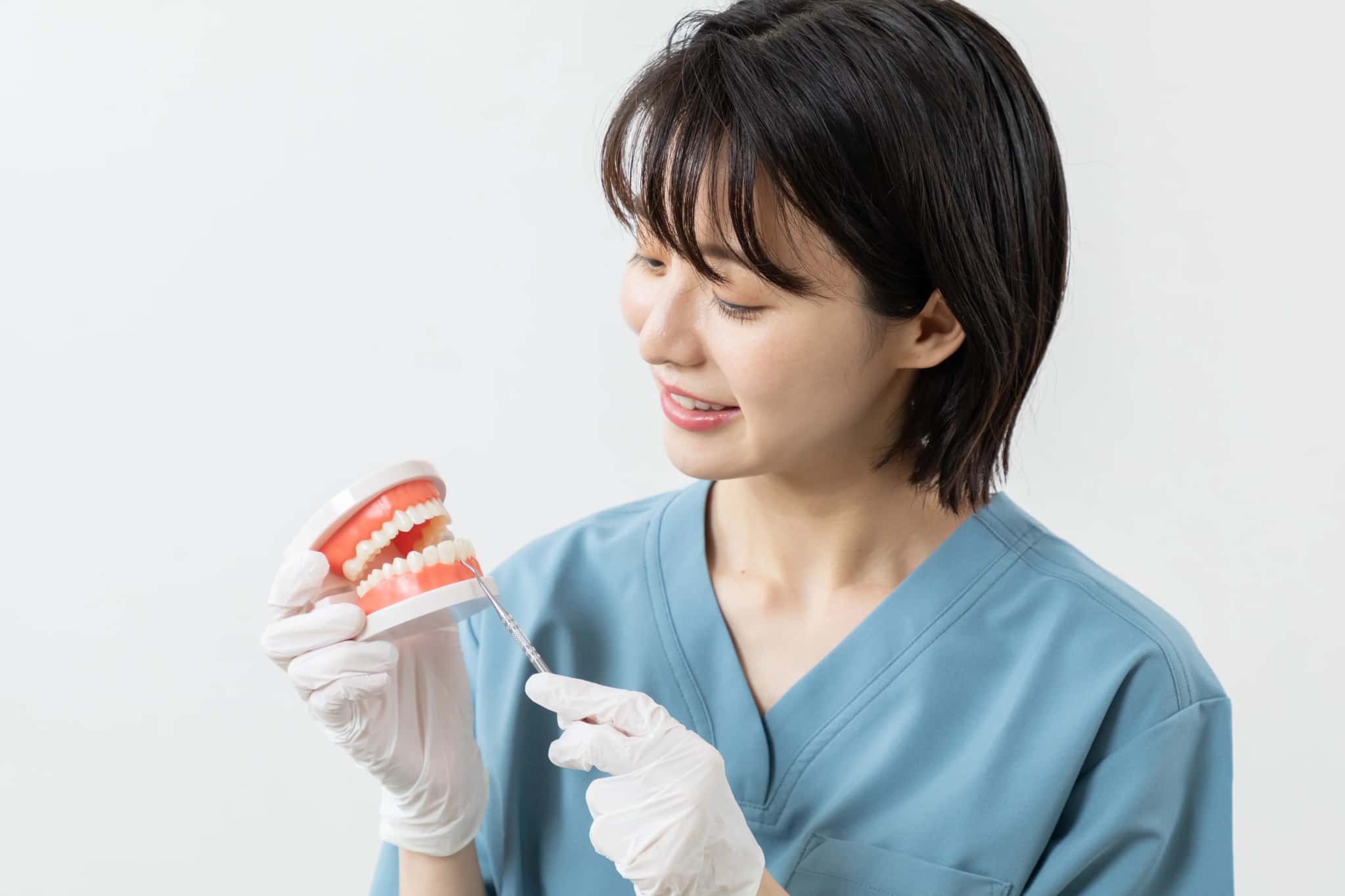 歯垢に潜む細菌が原因で起こる歯周病は、日本人が歯を失う大きな要因といわれています。初期段階では歯ぐきの軽い腫れや出血などわずかな症状しかありませんが、そのまま放置すると歯ぐきが下がり、やがて骨が溶けて歯を支えられなくなり、最終的に歯を失うリスクが高まります。