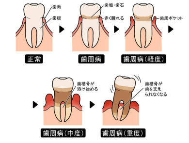 歯周病は段階的に進行します。