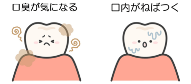 朝起きたときのネバつきや、口臭が気になる場合があります。これは歯周病菌が活動していることによるものです。自覚症状としては軽くても、歯ぐきの内部では炎症が進行していることが多いため注意が必要です。