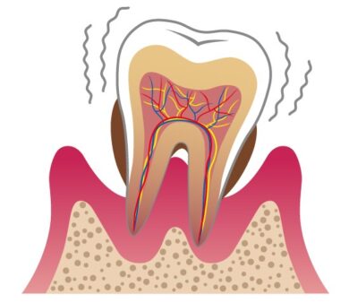 さらに進行すると、歯を支えきれなくなり、抜歯が必要になる場合もあります。